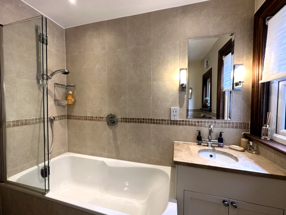 Second floor: There are 2 bedrooms on this floor, both with double sofabeds. The bathroom (making 3 in all) has a bath and overhead shower, basin and WC.