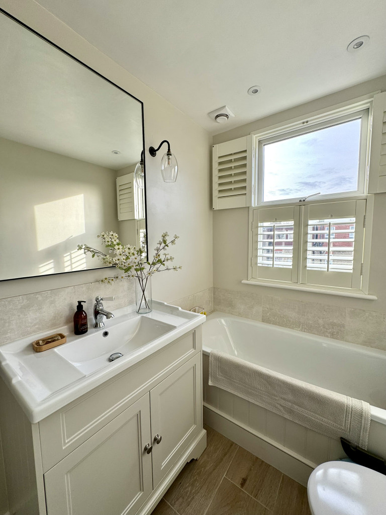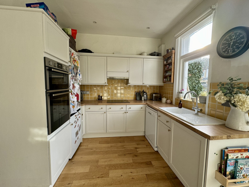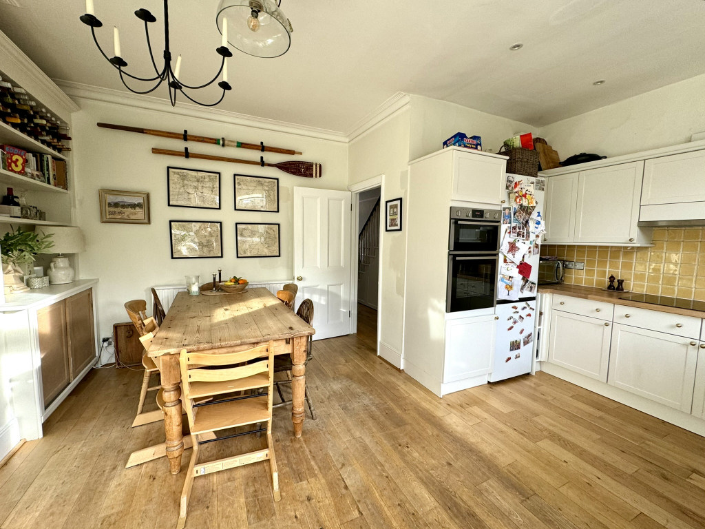Ground floor: off the hallway is an elegant sitting room with sofas and a TV. The TV package is exceptional and includes Sky Sports, TNT Sports, Premier Sports, Netflix, Prime, Disney+ and Apple TV+. To the rear of the house is an open plan kitchen / dining room. The kitchen is well equipped with all mod cons. The dining table seats 6-8 people. Glass doors open onto an attractive rear garden with garden furniture. There is a WC off the hallway.