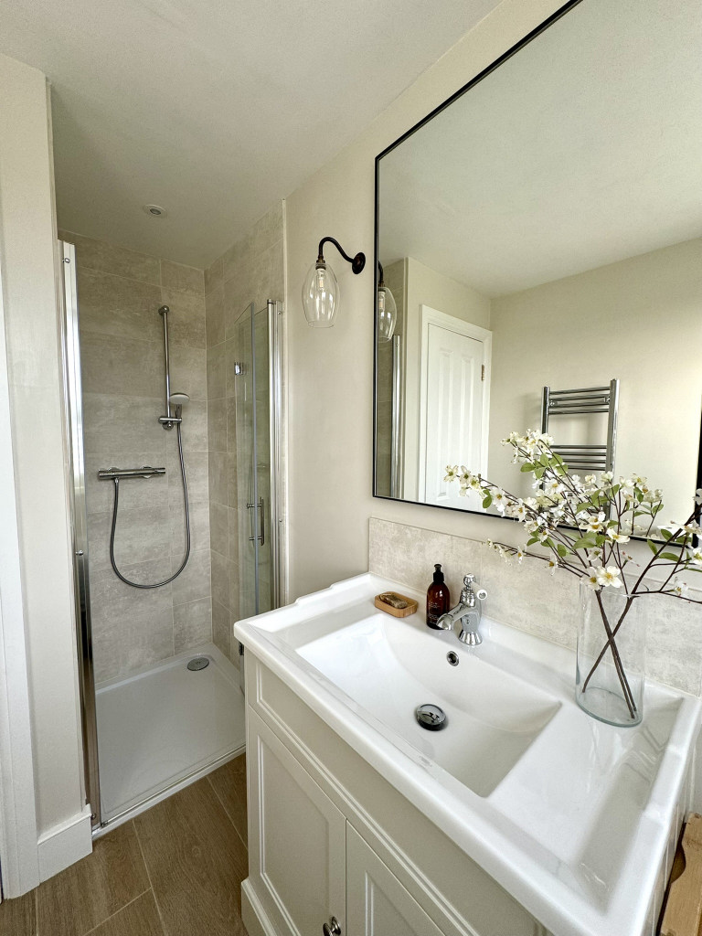 First floor: there are 2 large bedrooms on this floor, one with a 6ft wide superking size bed and one with a standard size double bed. The all new family bathroom has a walk in shower, basin and WC.