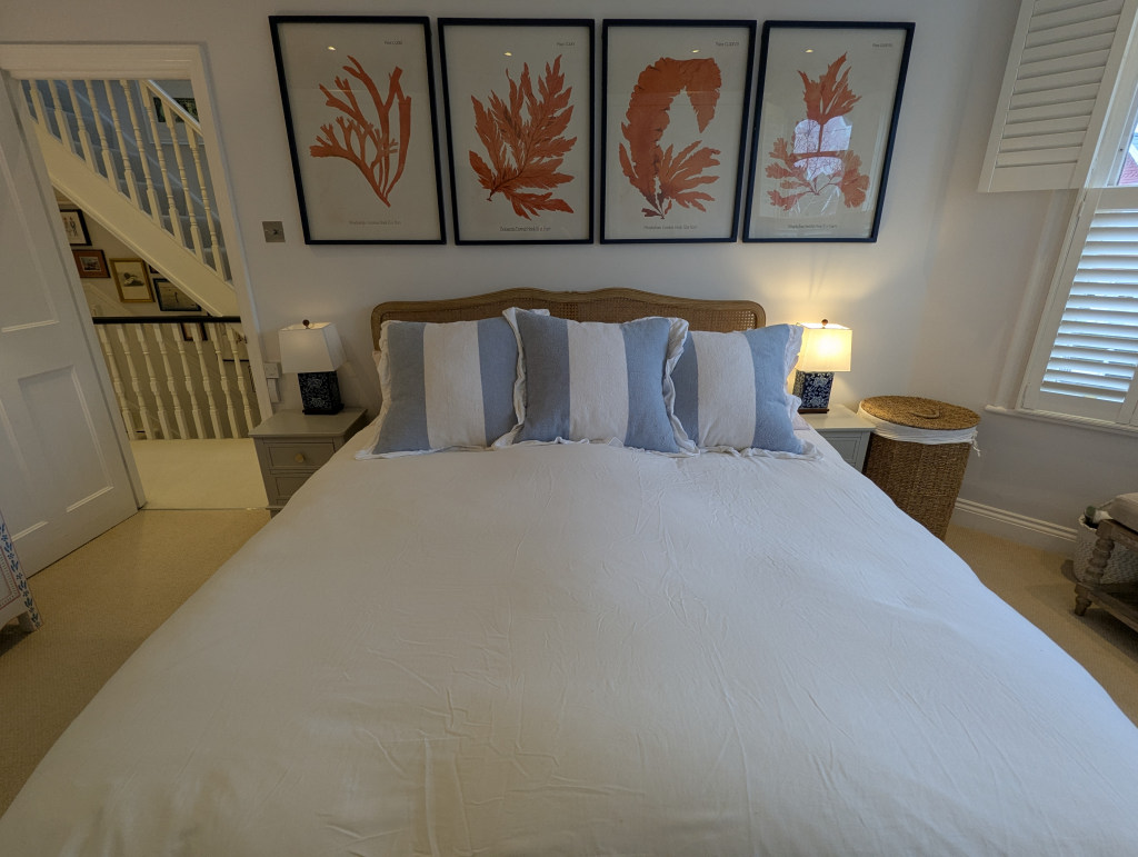 First floor: The master bedroom has a 6ft wide superking size bed, TV and ensuite shower room with a shower, basin and WC. Bedroom 2 is shown as a child's room but will have a standard sized double bed. The separate family bathroom has a roll top bath and handheld shower, basin and WC.