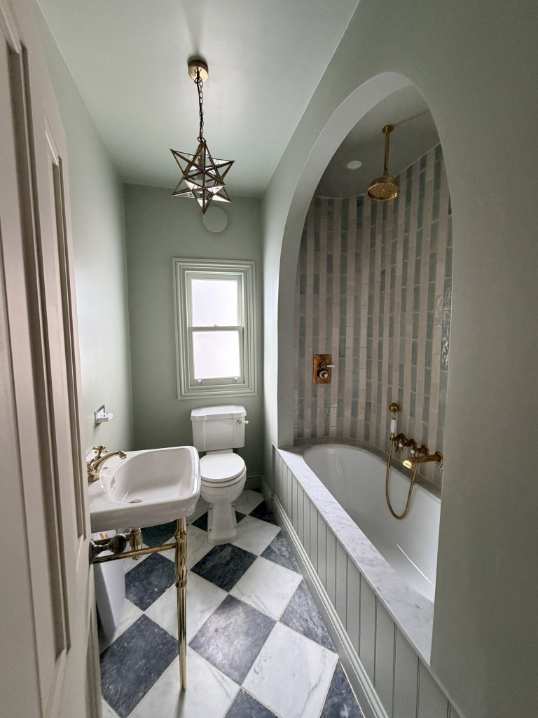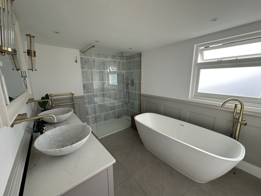 Second floor: Bedroom 4 has a 6ft wide superking size bed. The new ensuite bathroom has a freestanding bath, walk in shower double basins and a WC. Bedroom 3 has a standard sized double bed.
