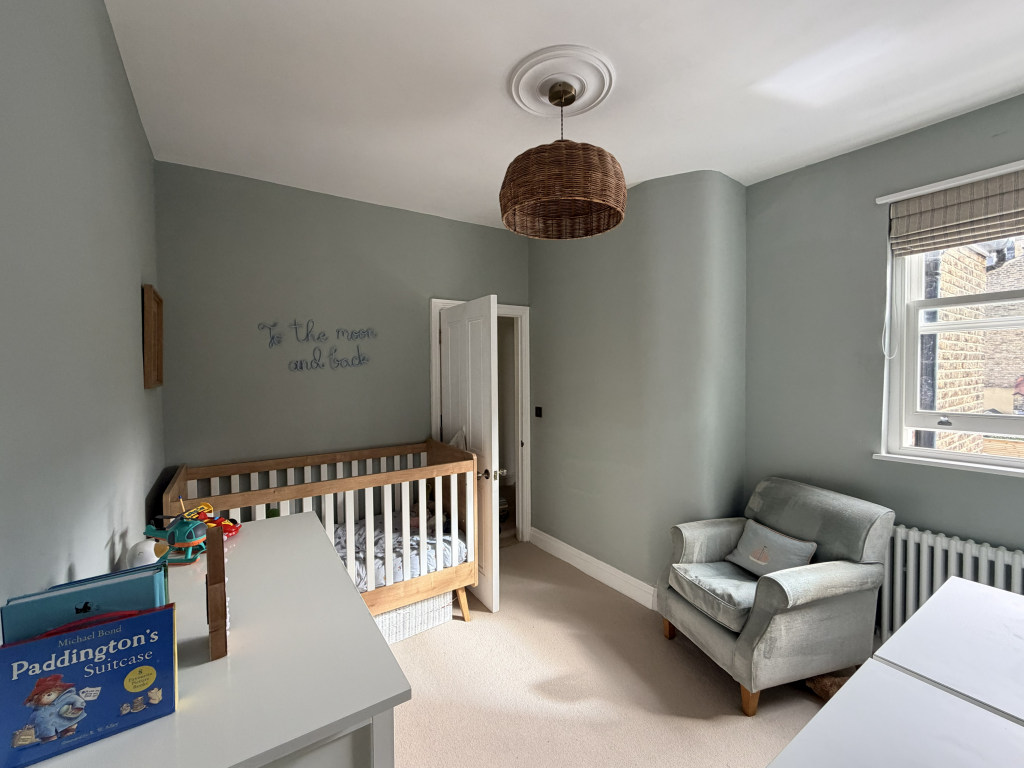 First floor: Bedroom 1 has a 5ft wide kingsize bed. Bedroom 2 is currently set up as a nursery but will have a standard sized double bed. Bedroom 3 has a standard sized double bed. The family bathroom has a bath and overhead shower, basin and WC.